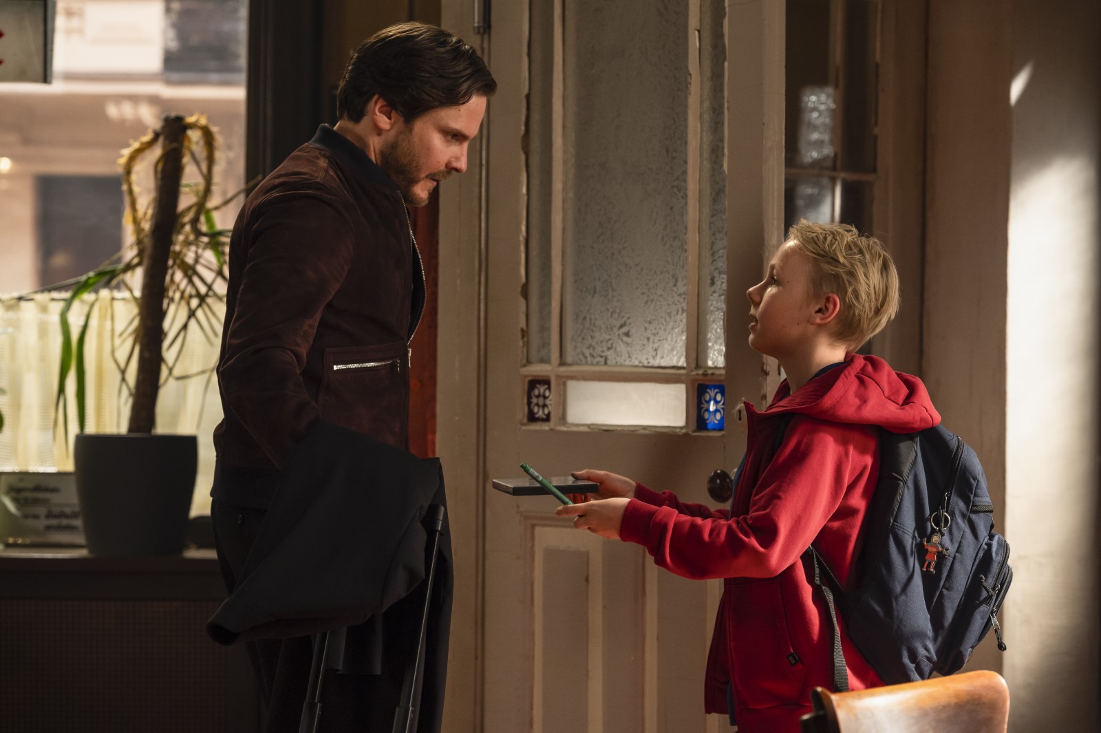 Critique : Ce héros orgueilleux pourrait être Daniel Brühl lui-même. Il vit dans un appartement cossu de Berlin, où les costumes occupent tout un pan du mur et où les femmes de ménage se substituent aux parents absorbés par leur travail. Il s’entraîne pour un casting où, à l’instar du véritable Daniel Brühl lui-même, il pourra incarner le rôle d’un super-héros. Le hasard de la vie l’amène à faire un détour dans un café de quartier avant de prendre un avion pour Londres. Le drame commence alors. Un homme gras le regarde fixement. La conversation s’engage et le pire survient dans l’existence de ce comédien assuré par la célébrité et la certitude qu’il est rempli de talent.