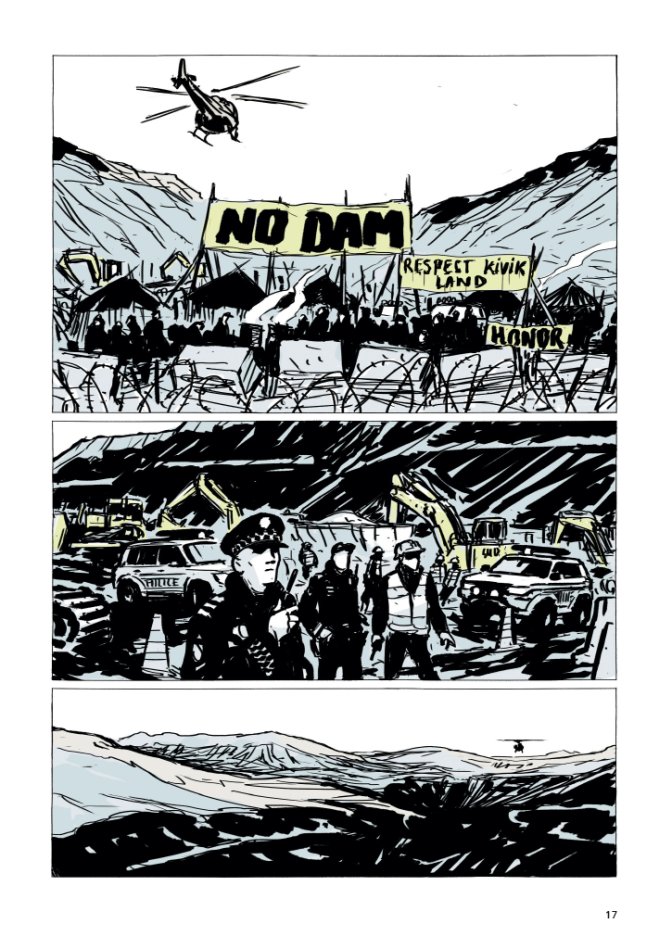 En choisissant une myriade de thèmes, entre luttes écologiques et sociales, conflits générationnels et passionnels, Anthony Pastor a tapé en plein dans l’actualité mondiale. Comme une prévision des Gilets jaunes en France, des transgressions politiques d’un Trump, les influences des ZAD ou barrages polémiques, il y a un terreau de violence qui ne demande qu’à sortir, surtout quand des protestants sont excédés, ou n’ont plus d’autres alternatives pour exister. Attention, s’il est très actuel et terriblement réaliste dans son approche des tendances, des liens et des pouvoirs, No War possède un petit quelque chose en plus, en l’occurrence d’une pierre mystique et même un peu magique, une matière fantasmagorique mais assez métaphorique. Ce premier album d’une trilogie ne fait pas qu’annoncer les combats, il plonge directement dans le cambouis, partant d’une enquête consécutive à un meurtre, comme beaucoup de polars venus du froid, il se prolonge dans la rue et la manifestation, pour acquérir toujours plus de force, et surtout un rythme crescendo très efficace.