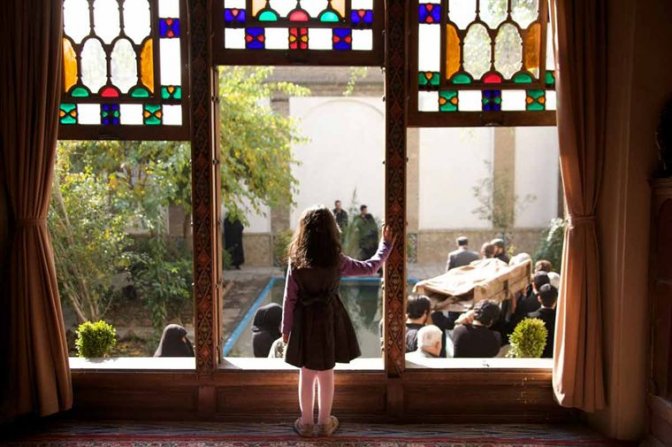 Ce remue-ménage donne d’ailleurs lieu à de subtils chorégraphies des corps fuyants, très souvent mis en scène dans des lieux de passages. Portes, escaliers, voitures, le cinéaste porte une attention toute particulière à la composition de son cadre, qui, à l’image de la société iranienne, est fortement hiérarchisé. Usant avec détails et nuances d’une grande profondeur de champ, Reza laisse parler les objets, les décors, et surtout, le silence. Avec délicatesse et précaution, la caméra se resserre lentement sur l’intimité des sujets filmés, par étape et par échelle de plan, comme pour demander la permission. Profondément marquée par la notion de respect, axiome même du Coran, l’approche se fait tout dans la retenue. Une pudeur qui décuple l’intensité de sentiments, exprimés par accoups, par chance et par hasard, au détour d’un regard. Intériorisées, les conventions morales deviennent plus la règle du jeu familial que le lieu de restrictions, installant une ambiance conviviale et bonne enfant faite de caches-caches, de chassés-croisés, et d’entrevues clandestines tapies sous les marches de la cave. Adossés à la fenêtre et baignés d’une lumière pelucheuse, Mariam (l’actrice et cinéaste Mahnaz Mohammadi) et Kazem rêvent sagement à leur avenir, presque aussi innocemment que la petite dernière. Presque, car très vite, il faut grandir, la mort frappe à la porte.