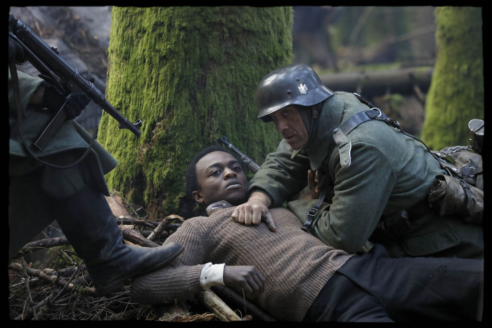 Parachuté dans un village des Vosges où l’on n’a jamais vu un homme de couleur, on peut s’étonner de voir Addi Bâ circuler librement alors qu’il est activement recherché par la Gestapo et qu’il n’est pas le bienvenu pour tous les habitants de cette France partagée. L’accumulation des clichés raciaux basiques ne manquera pas de nous le rappeler. C’est pourtant le remarquable Marc Zinga (dont a déjà pu mesurer tout le talent dans des films aussi variés que Dheepan, Bienvenue à Marly Gomont et surtout Qu’Allah bénisse la France, totalement habité par son personnage d’Addi Bâ qui parviendra sans conteste à capter notre attention. Habillé d’une dualité qui fait défaut aux autres protagonistes, il excelle autant en combattant redoutable qu’en séducteur délicat et donne une réelle dimension humaine à cette histoire qui n’attendait que ça.