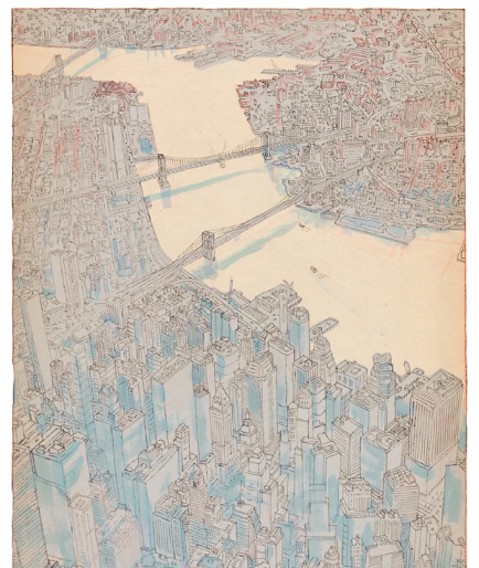 On comprend alors toute l’importance de ce titre par ces petites scènes de déambulation dans la ville et par le graphisme qui s’attache à faire vibrer un New-York organique qui aura permis à l’amour de continuer, même sous la forme d’une chimère. Les méandres de l’Hudson River, les rues larges et pleines de taxis, un ferry, mais aussi un appartement typique, tout y est vivifié par l’aquarelle qui déroule un New York délicat et d’une subtilité de peinture. On a une vision proche des réalistes américains, mais avec une douceur de couleur assez apaisante, qui fait que le sujet, grave, n’est jamais traité avec uniquement le désespoir.