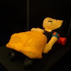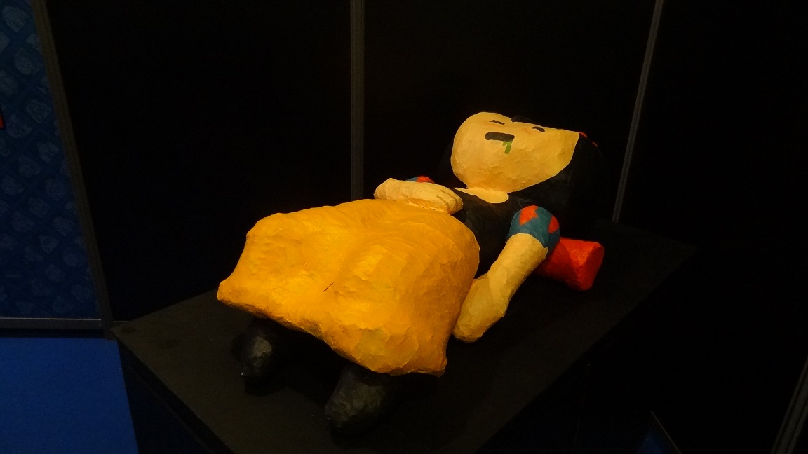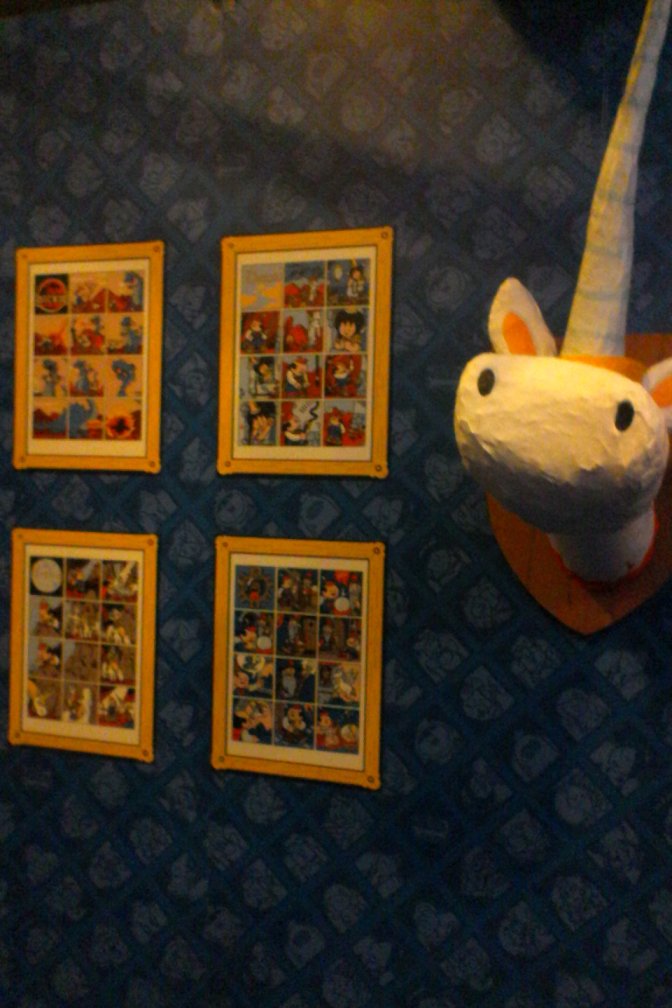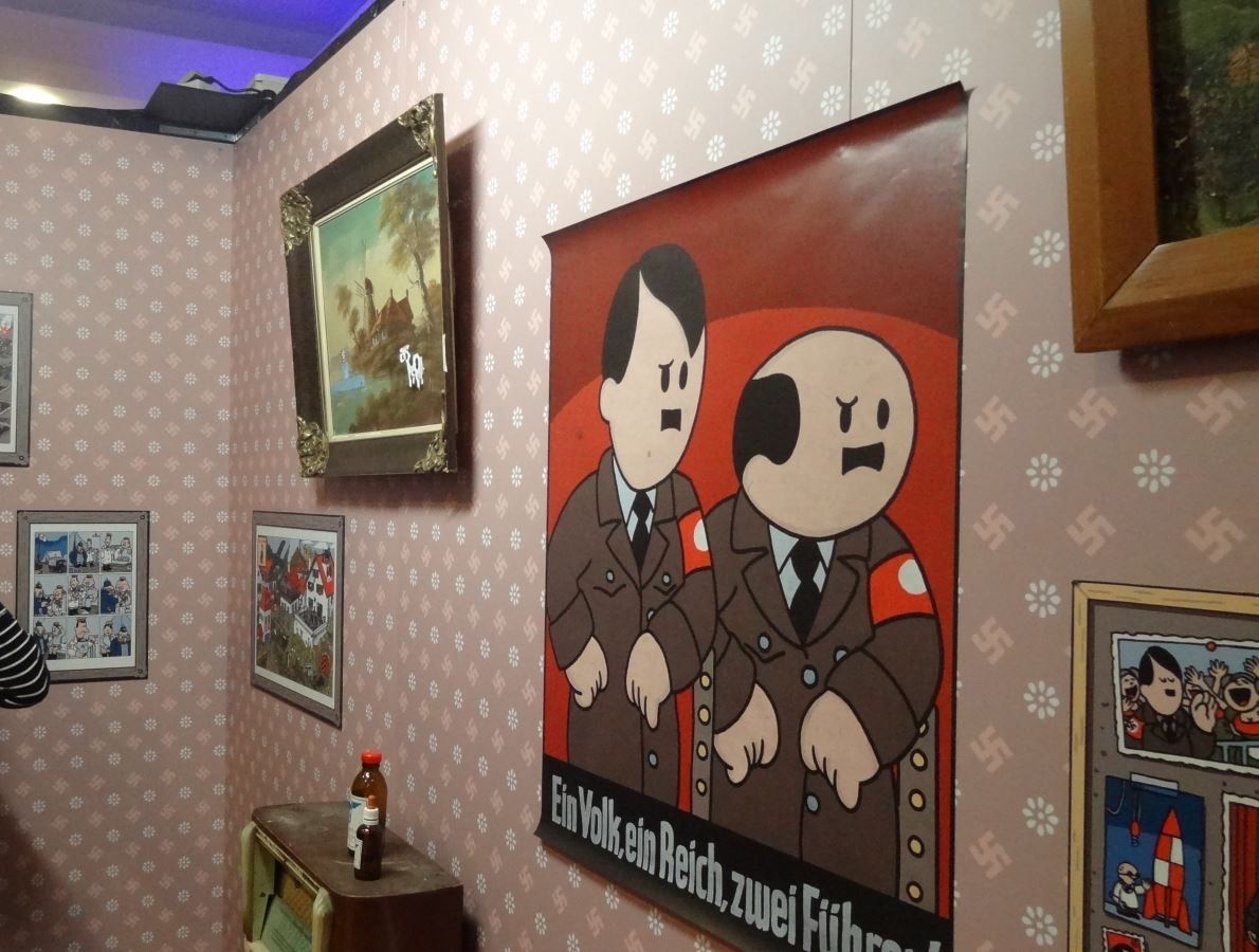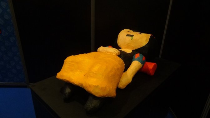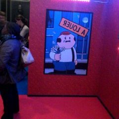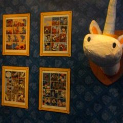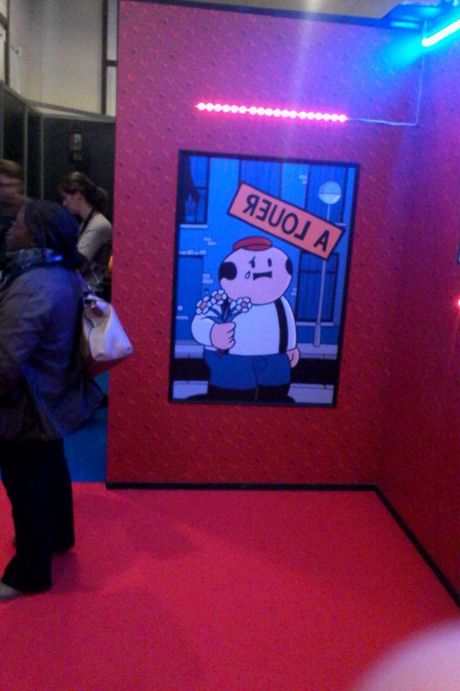 L’exposition à Quai des Bulles a été pour nous une réelle découverte. La mise en scène inspirée de l’univers du personnage et le tirage de planches en grand format nous plonge dans une atmosphère particulière : un univers coloré, cartoonesque qui ne fait qu’accentuer le côté acerbe des situations dans lesquelles se retrouve les personnages. Car Dickie c’est ça : un gentil petit loser sympathique qui se meut dans un univers joyeux à première vue. En réalité, Dickie c’est l’anti-héros par excellence accumulant tous les défauts du genre humain.
