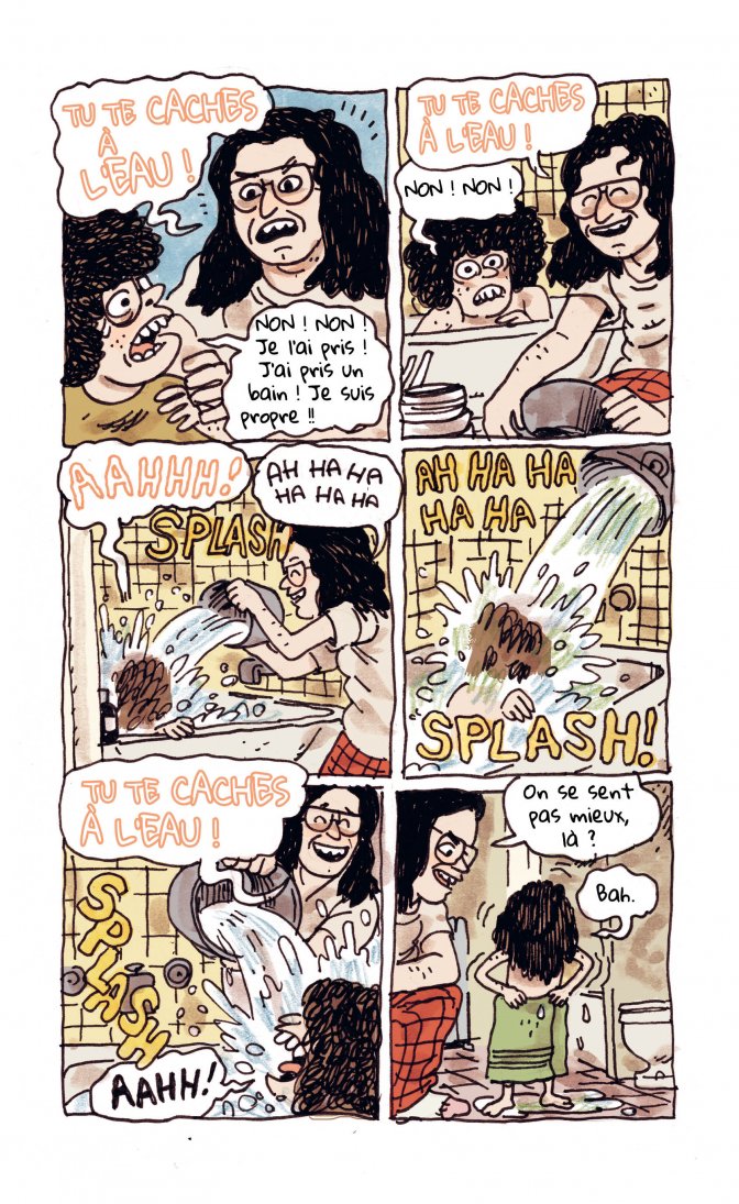 Résumé : Noah Van Sciver entraîne le lecteur dans son enfance, à la découverte de ses parents mormons, de ses huit frères et sœurs et de la vie quotidienne dans leur maison en bois en mauvais état. Faire ou lire des {comics} est une activité réalisée par bien des membres de cette famille singulière, dont le père est un avocat qui n’exerce pas cette profession et la mère, une femme au foyer. Au quotidien, chacun vaque à ses occupations, dessine, s’engueule, s’épaule, se bat, retire de la baignoire la vaisselle sale afin de pouvoir se laver… Devenu adulte, Noah met cette enfance en perspective avec sa vie de dessinateur qui cumule les boulots (libraire le dimanche, parfois boulanger…) et a l’impression que sa compagne ne saisit pas totalement la réalité de son existence.