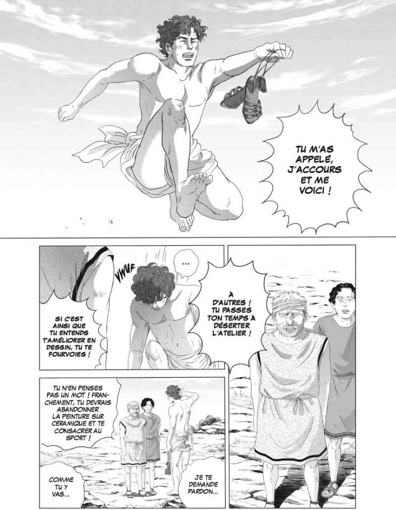 Résumé : En Grèce continentale, au IVe siècle avant notre ère, Démétrios est un artiste un peu fainéant, amoureux du grand air, de la fille du chef de son village Apollonia et de la nage avec les dauphins. Malgré lui, et surtout à cause de ses capacités d’athlète hors du commun, il est désigné comme représentant du village à la course… Un choc qui va le propulser au Japon, en 1964 !