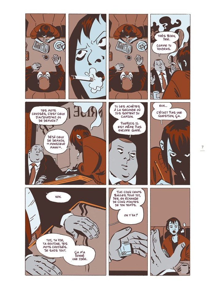 Résumé : Dee est une jeune femme junkie qui, après des accidents de la vie, mène une existence sans buts depuis son appartement. Un jour, un homme mystérieux lui propose un étrange travail : chaque matin à la même heure, elle doit acheter le journal, déchiffrer un code qui est caché dans les mots fléchés et le radiodiffuser depuis le toit de son immeuble. Quel est le sens de ces messages ? Elle l’ignore. Est-ce légal ? Certainement pas. Mais le travail est bien payé, et Dee accepte. Elle flambe son argent dans l’alcool et les boîtes de strip-tease, jusqu’au matin où il n’y a plus de code à transmettre. C’est le début des ennuis pour Dee, qui croise dans ses péripéties la trajectoire de deux autres femmes : Kay, une policière dont le couple et la vie professionnelle battent de l’aile, et Emma-Rose, qui rêve d’ailleurs.