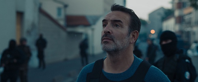 À l’instar de Kathryn Bigelow qui montrait à travers Zero Dark Thirty comment les États-Unis transformaient la traque de Ben Laden en véritable croisade où l’administration américaine abandonnait ses principes fondamentaux, notamment dans les droits accordés aux prisonniers de guerre, et utilisait tous les moyens à disposition, incluant la torture et la négation de l’humain, pour retrouver l’ennemi public numéro un, Jimenez pointe du doigt, notamment lors d’une scène clé où le personnage de Jean Dujardin ordonne à ses équipes de placer en garde à vue tous les Français ayant eu un comportement suspect les dernières vingt-quatre heures précédant les attentats, les dérives anti-démocratiques qui peuvent découler d’un état d’urgence absolu où le danger peut venir de partout dans un monde en perpétuelle mutation où nos administrations faillibles sont incapables de riposter. Novembre s’émancipe alors du genre du thriller nerveux pour s’élever en objet cathartique contemporain où la promesse d’un actioner bourrin se fait soudain récit de la mémoire collective de cette chasse aux fantômes.