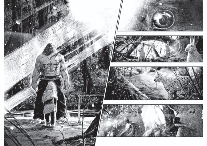 Sur le plan graphique, le trait de Locass est fin et apaisant lorsqu’il dépeint la nature, nous devons souligner ses qualités d’illustrateur naturaliste. Mais il sait se faire dynamique dans les scènes de combats et onirique à d’autres… en quelques mots, un talent à suivre.
