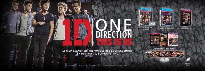 Pas de bol pour l’éditeur, c’est après les Fêtes de Noël, le 28 décembre, que sortira l’édition DVD & blu-ray de One Direction : This Is Us, titre symbolique en référence au This is it de Michael Jackson. Il y a de l’ego surdimensionné dans les pompes de ces mômes !