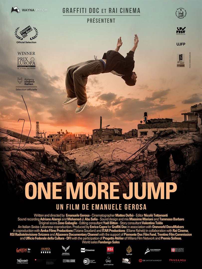 One More Jump est un film sensible et précieux. On découvre de l’intérieur les motivations qui poussent certains jeunes hommes à quitter leur pays. Ils se sentent même étrangers sur leur propre terre et rien n’est fait pour qu’ils s’installent sereinement dans une vie d’adulte. Ils se perçoivent proches de la mort quand ils auront quarante ans, fatigués par une existence misérable et honteuse. Pourtant, malgré le thème, le cinéaste n’abuse pas de la compassion et des larmes. Il filme ces garçons qui bravent les murs et les immeubles, dans une série de sauts impressionnants et intrépides. Le parkour pourrait devenir une issue pour certains d’entre eux, du moins une porte de sortie vers le rêve occidental où, quoiqu’on en dise, on parvient toujours à trouver un travail et une certaine forme de stabilité sociale. Cette manière qu’ils ont d’éprouver leurs corps, de mettre au défi leur propre résistance, est similaire au combat qu’ils endossent dans leur existence pour s’aménager un avenir.
