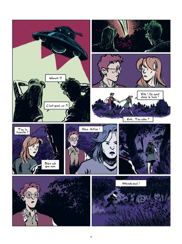 Durant les sixties, un couple d’étudiants qui se bécote en forêt voit une soucoupe volante se poser à quelques mètres d’eux… Le début d’un récit d’aventures qui questionne avec humour la mécanique du complotisme.