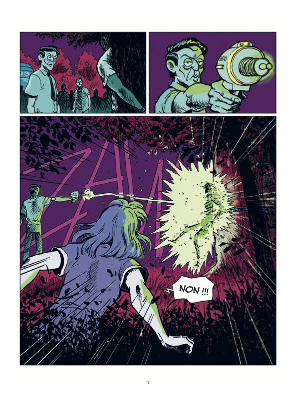 Olivier Perret reprend à son compte les codes du récit pulp comic à l’américaine et propose un dessin au trait avec des aplats de couleurs tranchées qui s’affranchissent des conventions réalistes. Les représentations de soucoupes volantes et de pistolet laser sont tout droit sorties d’un film de SF des années soixante. Si le dessin joue sur une certaine nostalgie, le récit rappelle intelligemment aux lecteurs que « ce n’était pas mieux avant ».