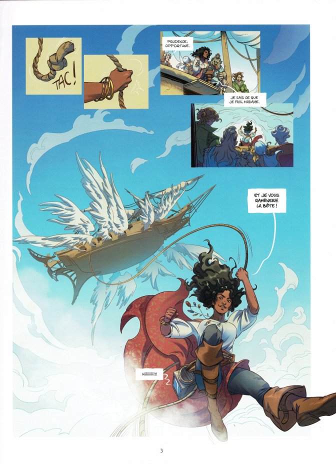 L’univers est riche et l’utilisation des hybrides ne consiste pas juste en une population de créatures fantaisistes. Ils ont une raison d’être, tous autant qu’ils sont et un rôle dans la narration et l’univers créés par Isabelle Bauthian. Le plus impressionnant est l’idée des bateaux volants. En effet, certains pans de terre flottent dans le ciel et ne sont accostables que par des navires aériens. Mais comment se déplacent-ils ? Avec le vent, certes, qui poussent les voiles mais aussi avec des hybrides emprisonnés dans les cales pourvues d’ailes immenses permettant de manœuvrer dans les airs. Ce monde est riche d’autres idées et d’une intrigue mystérieuse qui attirent l’attention. Les hybrides peuvent donc être des hommes à l’apparence animale, des créatures aux membres disproportionnés mais aussi des humains devenus complètement animaux, comme Boussole, l’oiseau d’Opportune qui a aussi un rôle dans l’histoire.