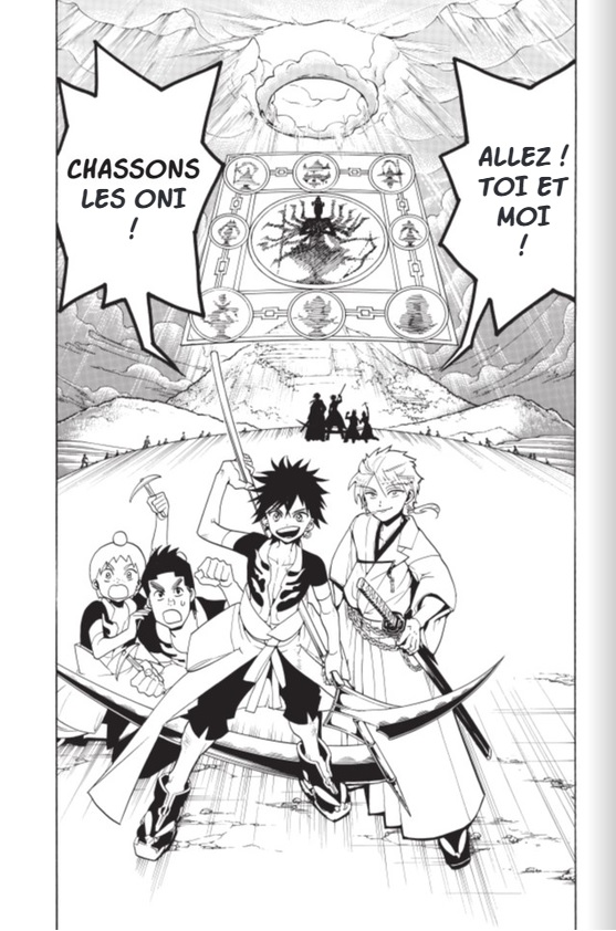 On regrettera cependant que son univers apparaisse fouillis et déroutant au premier abord. Les oni, que l’on nous présente comme de terribles démons, ressemblent initialement à de mignons chats et oiseaux (jusqu’à ce qu’ils dévoilent toute une panoplie de crocs, griffes et muscles surdéveloppés). Le récit se déroule durant le Japon féodal mais les guerriers disposent d’engins motorisés et volent. Tout est possible dans une fiction mais le premier tome est très largement consacré à l’action, et il aurait pu proposer davantage de clés de compréhension. La publication simultanée du deuxième volume compense cela en partie puisque certains enjeux y sont développés.