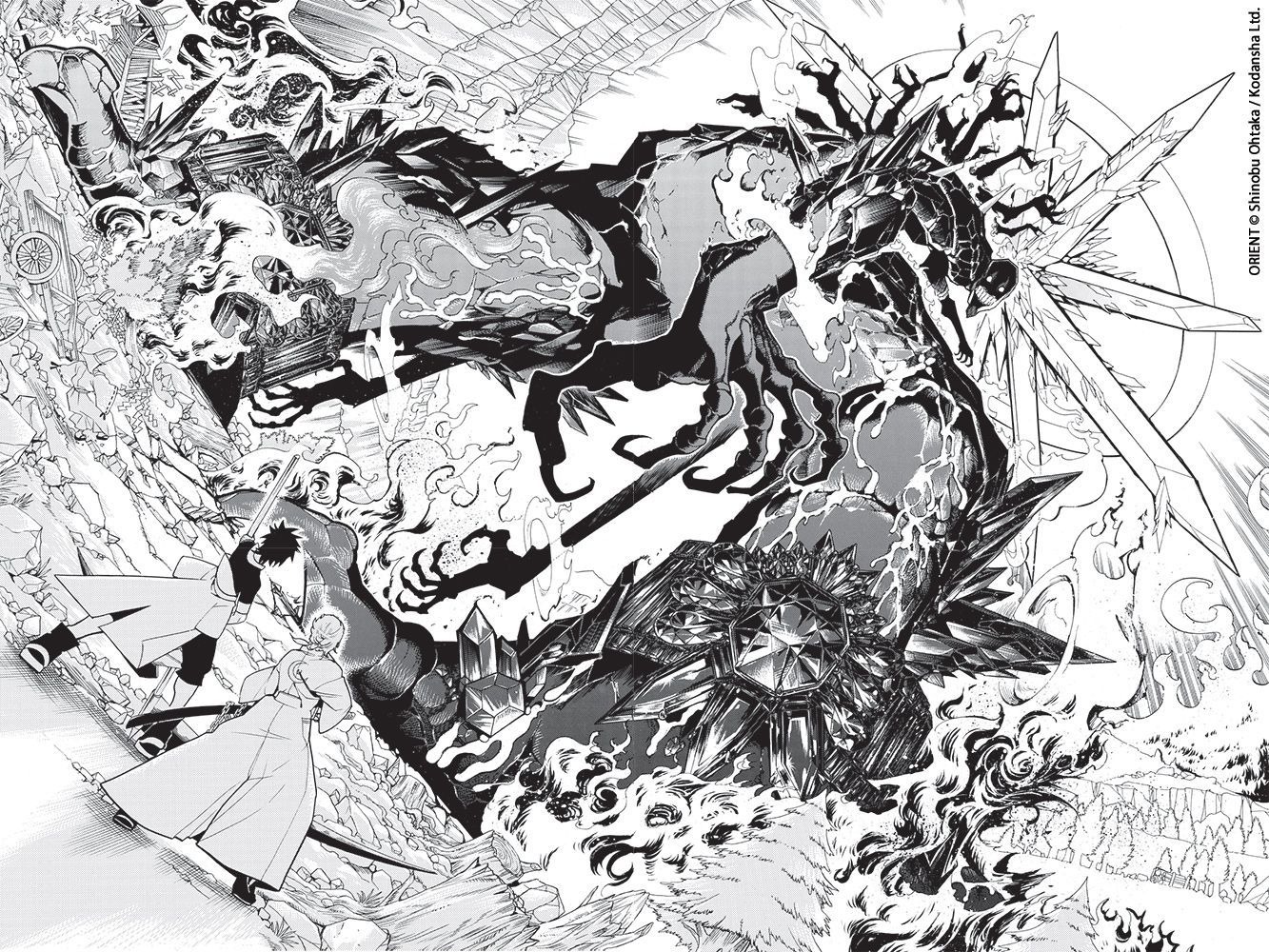 Trois ans après la fin de Magi – The Labyrinth of Magic, Shinobu Ohtaka revient avec un nouveau manga. On retrouve rapidement dans Orient Samurai Quest tous les codes du shōnen (amitié, rêve à accomplir, combats…) mais l’auteure apporte une touche d’originalité en installant Musashi et Kojirô du côté de ceux qui sont perçus comme des criminels. Par ailleurs, même s’il est certain qu’ils progresseront, elle ne les fait pas partir de zéro en matière d’entrainement.