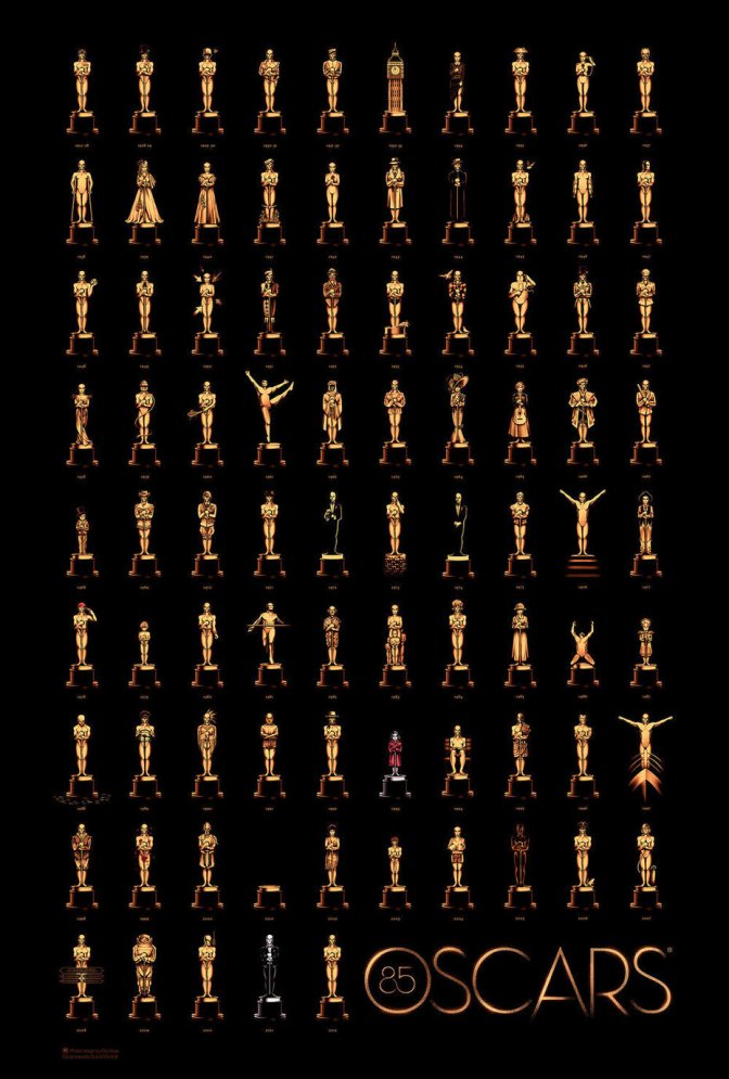 L’affiche de la 85ème cérémonie des Oscars a été publiée. Elle rend hommage à l’ensemble des films ayant remporté la statuette. Une affiche élégante et originale qui vous donnera peut-être envie de revoir quelques classiques.