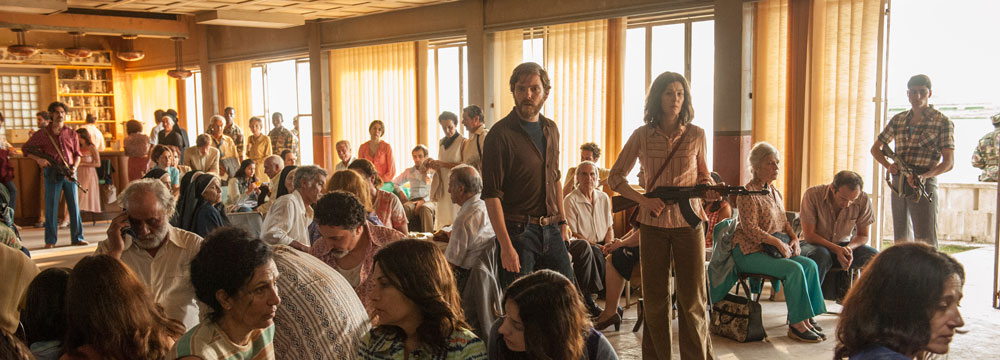 C’est d’ailleurs le nom des deux acteurs qui prêtent leurs traits aux preneurs d’otage allemands qui trônent en haut de l’affiche du film. Daniel Brühl et Rosamund Pike sont ces deux terroristes sur lequel le scénario va s’attacher pendant toute la première partie du long-métrage, laissant d’ailleurs leurs alliés du Front populaire de libération de la Palestine au rang de personnages secondaires. Il va même jusqu’à leur consacrer l’unique flashback du récit, essayant ainsi de justifier leur acte. Le flashback en question va cependant manquer en enjeux et révélations, au point de ne strictement rien apporter à l’intrigue principale qu’est ce détournement d’avion. Les relations tumultueuses entre ces deux membres des Cellules Révolutionnaires ainsi que leur ressenti plein de doute et de culpabilité, qui sont les éléments qui semblent dans un premier temps être le cœur dramatique de cette reconstitution, vont être peu à peu noyées dans la multiplication des points de vue. Désireux de s’intéresser aux otages, Padhilla ne va cependant faire que rendre certains d’entre eux à peine plus anecdotiques que la centaine de figurants qu’il a réunis. C’est le cas de la Britannique qui fait croire d’être enceinte avant de disparaître, de la mère de famille qui a peur d’être séparée de ses enfants mais qu’on ne reverra plus ensuite, de ce juif qui est tabassé car accusé d’être un espion mais dont on ne saura rien ou de cette rescapée des camps de la mort qui sert à exacerber la perplexité du preneur d’otage.