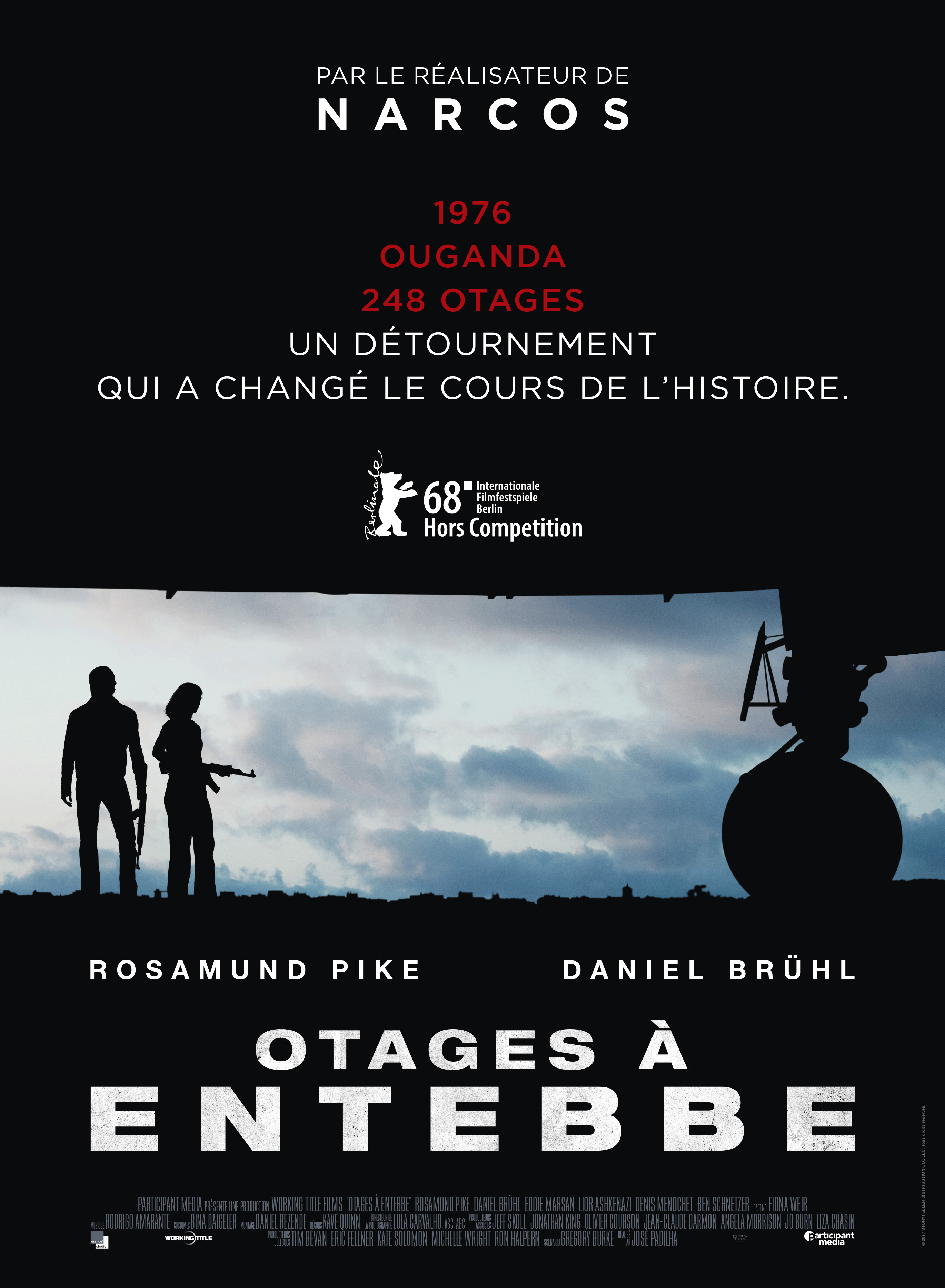Notre avis : Etrangement, le détournement du vol Air-France reliant Tel Aviv à Paris le 27 juin 1976, et dont la moitié des passages étaient français, est un événement qui semble avoir peu marqué dans l’Hexagone. Il n’a en tous cas inspiré aucun réalisateur français alors que deux films américains et un autre israélien lui ont déjà été consacrés. Aujourd’hui, c’est au tour du Brésilien José Padilha de s’intéresser à cet événement. Celui dont on a apprécié le diptyque ultra-violent Troupe d’élite mais bien moins le passage par la case Hollywood qui a engendré Robocop, et qui depuis a travaillé sur la série Narcos, tente une approche différente des précédents films qui prenaient tous le point de vue des Israéliens libérant victorieusement les otages. Le parti-pris audacieux de Padilha est de chercher à s’attacher à chacun des protagonistes de l’histoire, dans une optique de multiplication des points de vue qui n’est pas sans rappeler le travail de Paul Greengrass sur Vol 93 à la différence que son montage est construit de façon à changer de personnages principaux au fil de l’histoire, commençant par les révolutionnaires d’extrême-gauche qui détournent l’avion.
