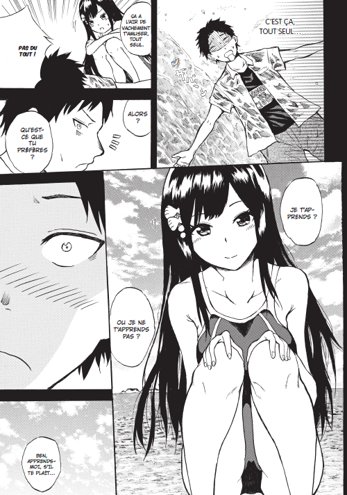 Pas de doute, certains auteurs de mangas maîtrisent le langage des sentiments et des émotions, à la façon de Zweig. Dans la même veine qu’un Our Summer Holiday, Our Summer Love s’intéresse à un amour adolescent d’une manière très pudique, délicate et authentique. L’humour et les codes attendus de tout bon shonen, comme le quiproquo pervers, restent présents, grâce au personnage de la petite sœur devenue grande. Sans être trop lourds, ils empêchent seulement l’histoire d’être intégralement dramatique, et sont donc bienvenus. Naoto lui-même, tombant amoureux de la Terminale discrète mais nageuse hors pair, est attachant de par sa timidité et son incapacité à avouer ses sentiments, comme tout bon héros. Les rares rebondissements sont souvent sans importance, ou trop attendus, mais c’est clairement l’atmosphère, lente et longue comme la marée qu’emporte le sable et les souvenirs, qui est primordiale.