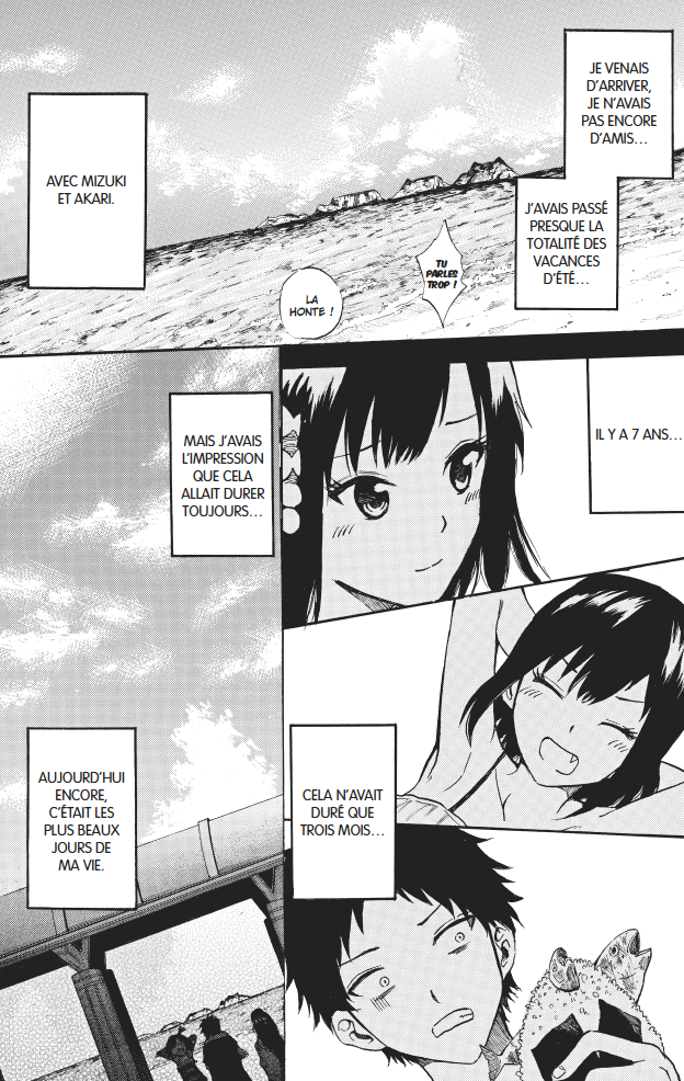 Pas de doute, certains auteurs de manga maîtrisent le langage des sentiments et des émotions façon Zweig. Dans la même veine qu’un Our Summer Holiday, Our Summer Love s’intéresse à un amour adolescent d’une manière très pudique, délicate et authentique. Grâce à la petite sœur devenue grande, l’humour et les codes attendus de tout bon shonen, comme le quiproquo pervers, restent présents. Sans être trop lourds, ils empêchent seulement l’histoire d’être intégralement dramatique, et sont donc bienvenus. Naoto lui-même, tombant amoureux de la terminale discrète mais nageuse hors pair, est attachant de par sa timidité et son incapacité à avouer ses sentiments, comme tout bon héros. Les rares rebondissements sont souvent sans importance, ou trop attendus, mais c’est clairement l’atmosphère, lente et longue comme la marée qu’emporte le sable et les souvenirs, qui est primordiale.
