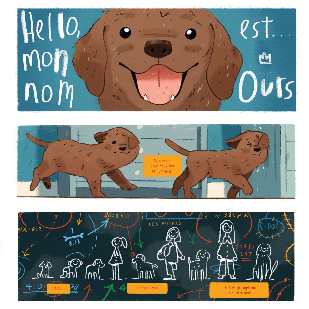 En lisant cette bande dessinée sans avoir été informé du résumé, nous avons été totalement dérouté par l’élément perturbateur vertigineux qui saisit cet album : le chien guide est lui-même victime de cécité, et c’est donc à travers son histoire que l’on pourra suivre les difficultés, les obstacles et les peurs qui se dressent chaque jour dans la vie des non-voyants. Alors, évidemment, le gang de ratons laveurs, les véritables ours avides de revanche, la visite d’un musée, toutes ces péripéties nous ramènent dans l’univers du conte, certes actuel et contemporain, mais clairement à destination des enfants. Pour autant, avec son empathie débordante et sa valeur de confrontation au handicap, Ours est bien plus qu’un simple ouvrage jeunesse, il est un étendard à faire flotter dans de nombreux foyers, permettant non seulement de lire une histoire parlant d’autrui, mais surtout de faire voyager dans la tête des autres, grâce notamment aux pensées de ce jeune chien attachant.