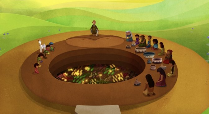 On a choisi la technique la mieux maîtrisée dans notre environnement direct. En France, on a une culture très artisanale du stop motion, contrairement aux Anglais, comme les studios Aardman, qui sont des maîtres du stop motion. Quand le réalisateur nous a proposé de réaliser le film en stop motion – ce qui avait un sens puisqu’il voulait s’inspirer des poteries et statuettes précolombiennes pour donner une matière et une couleur spécifique au film. le fait de monter ce film en stop motion coûtait un peu d’argent, nous obligeait à avoir recours à une technique qui ne compte pas suffisamment de talent en France pour nous permettre de maîtriser parfaitement la fabrication d’un long-métrage. Certes, Ma vie de courgette a été fait en stop motion, mais avec la participation d’artistes suisses, qui ont aussi la culture de cette technique. Nous avons travaillé avec le studio Blue Spirit, qui sait modéliser et animer les personnages en 3D pour ensuite les rendre en 2D. Pachamama se passe dans les montagnes, dans des grands espaces et met en scène des personnages inspirés des poteries précolombiennes, c’est pourquoi nous voulions conserver du volume et de la perspective comme on l’aurait fait si cela avait été un film en 3D. Cela nous permettait d’avoir les économies d’échelle de la 3D, c’est-à-dire de pouvoir animer les personnages de façon plus rapide qu’en 2D traditionnelle, et d’avoir un rendu « 2D trois quart » où la 2D avait quand même un peu de volume.
