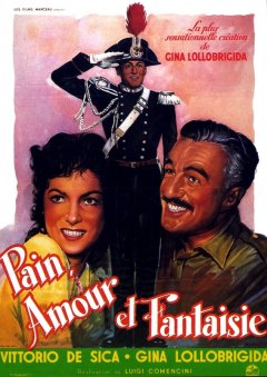 « Que manges tu ? », lance le maréchal des logis à un paysan assis sur une marche. « Du pain », lui répond tristement celui-ci. « Et avec le pain ? » insiste Carotenuto. « De l’imagination » répond l’autre avec un sourire. C’est d’après ce charmant échange que Pain, amour et fantaisie fut baptisé. À Sagliena, petit village de montagne imaginaire dans une région perdue d’Italie, chacun s’efforce donc de faire contre mauvaise fortune bon cœur. Le maréchal Antonio Carotenuto, incarné par l’excellent Vittorio De Sica, est le parfait exemple de cette manière d’envisager chaque chose de la vie avec bonhommie. Sa loquacité, son bon cœur et ses esquisses amoureuses avortées font tout le charme de ce personnage transalpin mythique. Aux côtés de De Sica, on admire la superbe Gina Lollobrigida, de qui se dégage un charme certain ainsi qu’une légère odeur de scandale qui n’est pas pour déplaire aux hommes du coin... ni au spectateur.