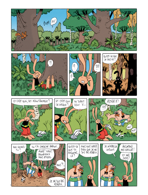 Résumé : Lapinot se réveille dans une forêt et y rencontre Obélix qui l’appelle immédiatement Astérix. Le lapin croit d’abord en une mise en scène, mais quelques situations plus loin, il doit se rendre à l’évidence : il a bien intégré l’univers du vaillant petit Gaulois et est pris pour lui. Il cherche alors à comprendre ce qui s’est produit et à sortir de cette situation.
