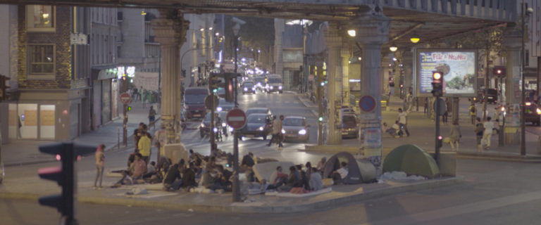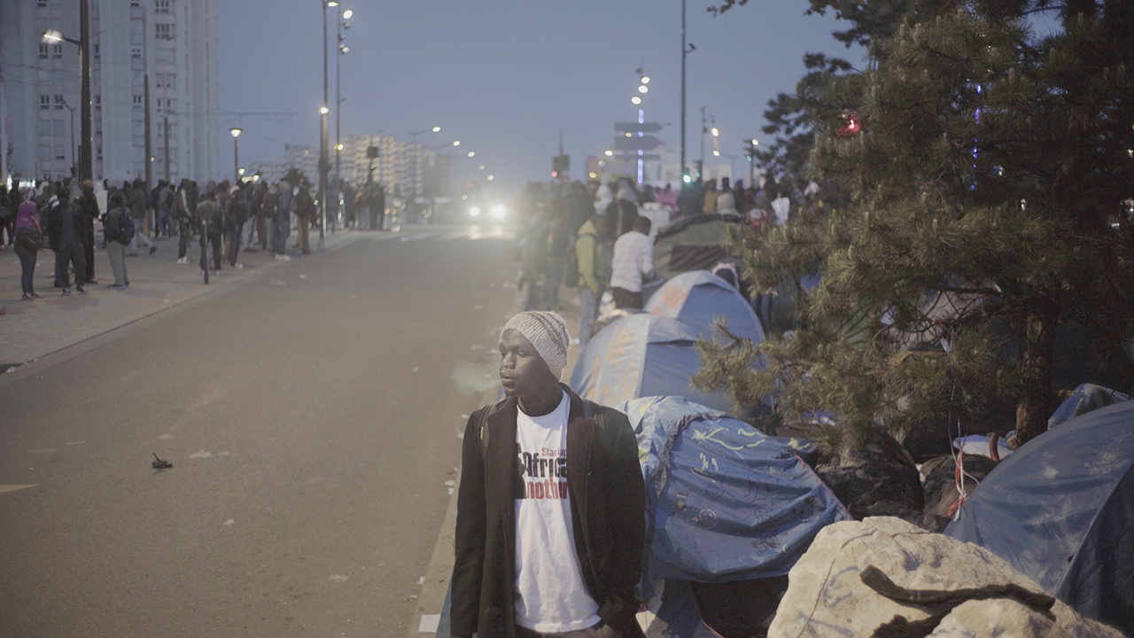 Résumé : Ce film est un portrait de Paris vu par Souleymane, 18 ans, réfugié du Darfour. Arrivé en France après un périple traumatisant de cinq longues années, la "ville lumière" dont il avait rêvé, loin de répondre à ses attentes, lui inflige de nouvelles épreuves. À la dureté des situations, répond sa poésie douce-amère. En suivant Souleymane, le film retrace le parcours des migrants dans Paris : les campements de rue, les interminables files d’attente devant les administrations, les descentes de police et la mobilisation des habitants du quartier pour venir en aide aux réfugiés. La caméra témoigne d’une métamorphose d’une ville et nous montre l’émergence de nouvelles frontières intérieures : des kilomètres de grillages pour rendre inaccessibles les allées sous le pont du métro aérien, des pierres pour empêcher les migrants de s’allonger, des rondes de vigiles pour les déloger.