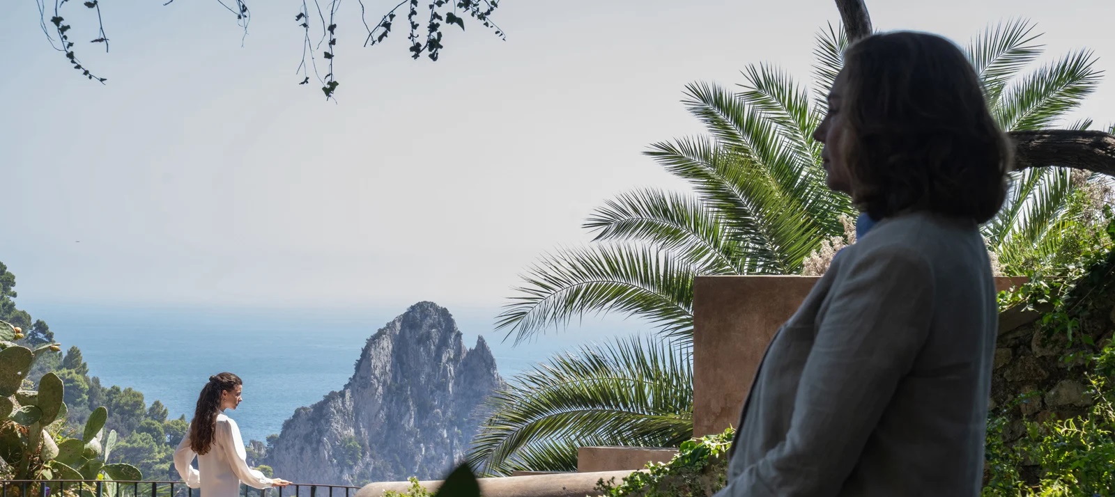 Parthénope se focalise ainsi sur la personnalité de Parthénope tout en cernant une certaine image de l’Italie du Sud, en particulier lors de la première moitié des années 70 qui sont celles de la vie d’étudiante de la jeune femme. Pathénope, est belle, intelligente, posée, et réussit à susciter l’admiration de son entourage. Cette passionnée d’anthropologie forme un trio fusionnel avec son frère, mystérieux et fragile, et un ami d’enfance, son premier amour de jeunesse. Une partie du récit montre les trois jeunes gens entreprendre une escapade à Capri qui sera l’expérience la plus marquante de la vie de Parthénope, mêlant plénitude et tragédie. D’autres hommes exerceront une influence sur elle, comme son professeur d’université (Silvio Orlando), rigide mais qui la forcera à donner le meilleur d’elle-même ; et un écrivain anglophone (Gary Oldman) dont elle admire l’œuvre. Sorrentino et Contarello sont subtils dans ce portrait d’une jeune femme émancipée qui gardera toujours son libre arbitre et restera fidèle à ses valeurs, mais nul manichéisme ou volonté démonstrative dans l’histoire. En ce sens, Parthénope est l’un des films italiens féministes les plus aboutis, loin de la roublardise de Il reste encore demain (qui certes ne décrit pas le même milieu).