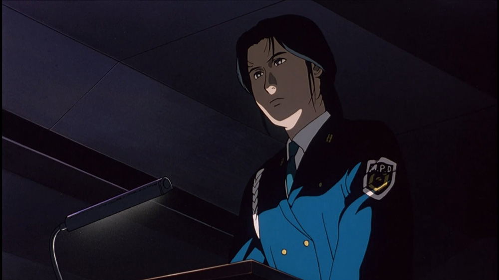 Situé dans le lointain futur de l’an 2002, Patlabor 2 se détourne volontairement de l’action et concentre son récit sur l’attente et la tension qui précèdent un conflit terroriste qui semble inévitable. Sur sa durée de 113 minutes, le long-métrage ne montre quasiment jamais l’escouade Patlabor. Quant aux personnages que vous appréciez depuis la série et le premier film ? Ils sont tous oubliés ou relégués au second plan. Si Oshii propose quelques scènes à suspense, celles-ci ne constituent en aucun cas le cœur du film, dévolu à la contemplation. Alarmée par une obscure menace terroriste, la ville de Tokyo devient fantomatique, vide de population et seulement hantée par des personnages en quête de sens, perdus dans l’attente du début d’une guerre qui n’arrive jamais. L’occasion pour Oshii d’enchaîner les monologues philosophiques, accompagnés par la musique envoûtante de Kenji Kawai. Scènes qui seront répétées dans Ghost in the Shell deux ans plus tard. On retiendra également la protagoniste Shinobu Nagumo, perdue dans les sphères misogynes du pouvoir tokyoïte. Un beau portrait de femme, nuancé et complexe.