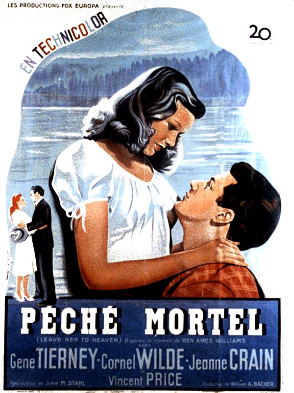 Il faudrait tout citer : la dédicace du roman, les aveux entre naïveté et perversion … Chaque séquence est un joyau que Stahl met en scène avec précision, alternant moments lyriques, dramatiques et apparemment anodins, en un crescendo qui colle le spectateur à son siège. Même ceux qui l’ont déjà vu se perdent avec délice dans cette noirceur au suspense diabolique. Il faut dire que la beauté éclatante de Gene Tierney a rarement été aussi bien utilisée : elle attire la lumière et sait composer un personnage ambigu, entre son visage fermé à la moindre contrariété et ses mines irrésistibles face à Dick. L’assez pâlot Cornel Wilde est le pendant idéal, puisqu’il est moins un séducteur qu’une proie, la projection d’un sentiment irraisonné.