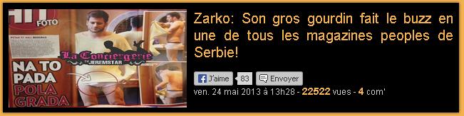 Pause news : "Zarko : Son gros gourdin fait le buzz en une de tous les magazines peoples de Serbie !"