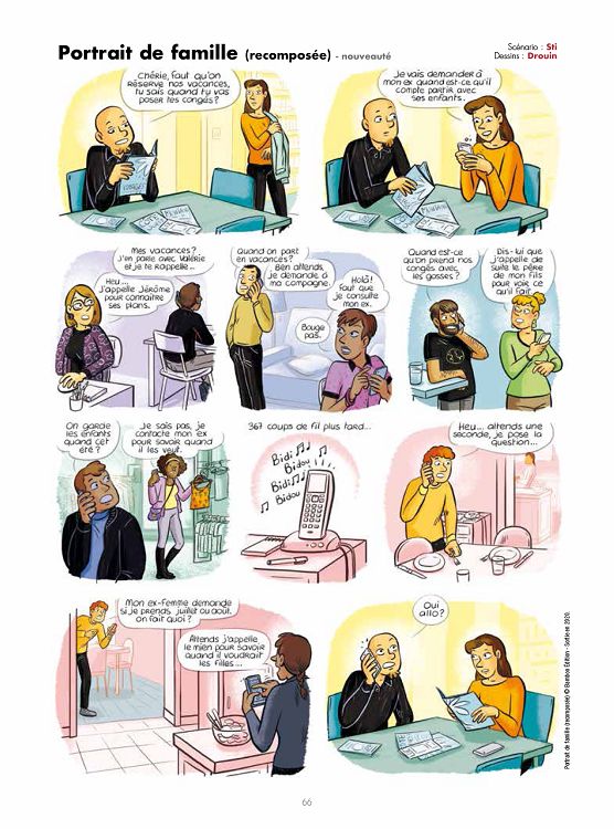 Les histoires de Sti sont autant d’anecdotes courantes que rencontrent les familles recomposées. Mais elles savent, partant d’une situation parfois compliquée, finir non pas forcément avec une solution, mais toujours avec un éclat de rire. La force de cette série est de savoir nous surprendre avec des sujets que l’on pensait devenus classiques, la vie de famille (recomposée ou pas). En plus de nous donner matière à rire et à sourire, Sti crée des personnages attachants, inspirés (lointainement) de sa propre vie et de sa propre famille. Cela lui donne sans doute cette envie de ne pas juger, mais juste de rester proche de tous ses personnages. Bien sûr, on suit davantage Nicolas, le père, qui est majoritairement notre regard et notre point d’entrée dans cet appartement, mais Sophie, sa compagne et les enfants trouvent aussi leur place.
