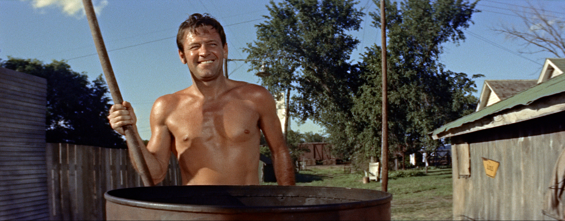 À partir des premières minutes, Hal est vu comme un corps énergique et désiré, ce que la suite accentuera encore, dans un monde où les dialogues sonnent creux ou s’avèrent trop explicites. C’est également une société d’apparences, dans laquelle une robe peut prendre une importance démesurée, et les femmes comme il faut soignent parfois de manière dérisoire vêtements et maquillage. Derrière la façade aimable qui ne cesse de se fissurer, les failles percent très vite, comme si tout était déjà faux, un peu excessif, décalé. Logan excelle d’ailleurs dans cette présentation plus fine qu’il n’y paraît. Il y démonte consciencieusement le rêve américain et ses impostures (la réussite et ses corollaires avidité et jalousie, la religion, les voitures), en multipliant des personnages qui en incarnent des facettes. Le fait que le film soit l’adaptation d’une pièce de théâtre explique autant cette vision acérée que l’abondance et l’importance des dialogues, un peu trop écrits par moments.