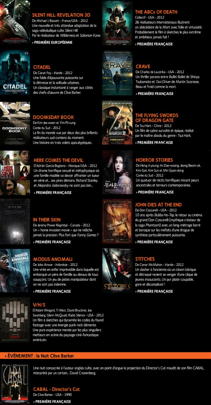 Succès aidant, le festival 2.0 est donc cette année officiellement établi au bienveillant Gaumont Opéra avec une programmation qui se rallonge carrément, puisque désormais l’équipe investira le temple du cinéma à Paris Opéra pendant 9 jours, du 16 au 25 novembre. La compétition commence à se dévoiler peu à peu, avec de très gros films (certains sont en cours de négociation), dont la première française de Silent Hill : Revelation 3D, un film à sketch co-réalisé par Kim Ji-woon (J’ai rencontré le diable, mais aussi le nouveau Schwarzy !), un Tsui Hark, l’évènement V/H/S, documenteur en plusieurs segments réalisé par la crème du cinéma d’épouvante d’aujourd’hui (dont Ti West), bénéficiant de l’une des bandes-annonces les plus flippantes de l’année. Parmi les films anciens projetés, le director’s cut de Cabal de Clive Barker, jamais diffusé en France, viendra raviver des souvenirs cinématographiques, Cabal étant tout simplement l’un des meilleurs films d’horreur des années 90 !
