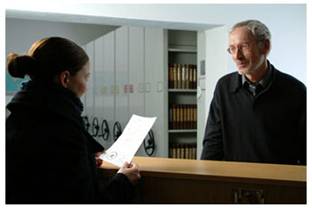 Un des plus beaux exemples de l’humour si particulier du film est fourni lorsque Pink déclare le décès de son premier mari à l’état civil. L’employé, aimable et souriant, se lance alors dans une apologie de sa fonction aux accents presque lyriques : Nous sommes l’administration la plus importante du pays. Lorsque les gens naissent, nous établissons un acte de naissance, puis ils se marient, et nous établissons un acte de mariage, puis il meurent et nous établissons un acte de décès. N’est-ce pas un cycle parfait ?