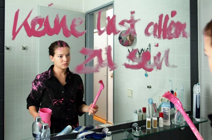 La trame narrative chez Thome est toujours à la fois très simple et un peu lacunaire (Ca avance par à-coups avec des trous gigantesques, dit-il) et adopte généralement la structure du conte. Pink ne fait pas exception à la règle avec son héroïne trouvant chaussure à son pied au troisième essai après avoir surmonté les épreuves indispensables à tout parcours initiatique. Le personnage joué par Hannah Herzsprung, avec son air de petite fille obstinée et méthodique qui entend contrôler son existence et forcer le bonheur, n’est pas sans rappeler certaines héroïnes rohmeriennes et les deux cinéastes ont plus d’un trait commun, à commencer par le goût des cycles (la trilogie Zeitreisen 2002-2005).