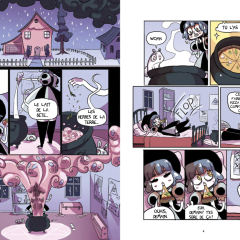 Critique : Suivie par une communauté importante sur internet (2 million d’abonné sur Youtube en particulier, sous le pseudonyme Lavendertowne), Haley Newsome est une artiste américaine 2.0, qui a d’abord conçu Planchette (Unfamiliar en anglais) comme un webcomics. Le récit, qui s’adresse en premier lieu aux adolescent, possède au premier abord un côté girly avec son héroïne aux cheveux colorés, ses dessins tout en rondeur et ses familiers mignons. Cet univers s’avère aussi décalé, qui tire vers le gothique : les personnages principaux sont des sorcières, on trouve des fantômes, des malédictions, un monde parallèle, une forêt angoissante… Il en ressort une histoire dynamique et assez réjouissante, qui se construit autour des failles de ses personnages.