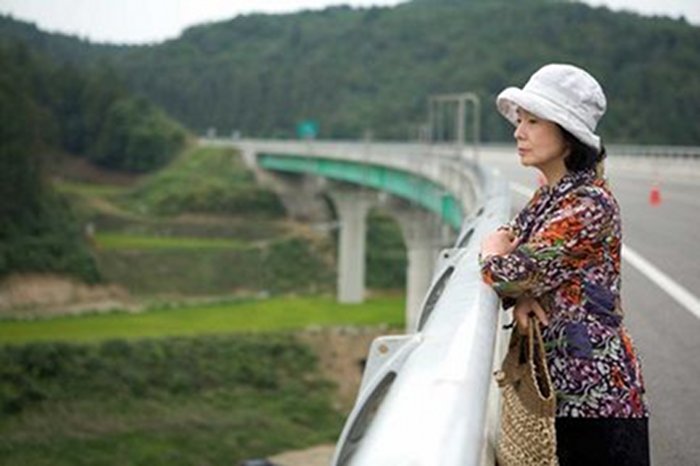 Avec son air à la fois rêveur et déterminé, son regard parfois absent et soudain attentif, l’actrice Yun Jung-hee parvient à donner une belle présence à l’écran à ce personnage de vieille dame indigne (jolie scène où elle chante à tue-tête dans un bar à karaoké désert ; et cette autre où elle satisfait les désirs du président, vieillard diminué qui « veut être un homme une dernière fois »).