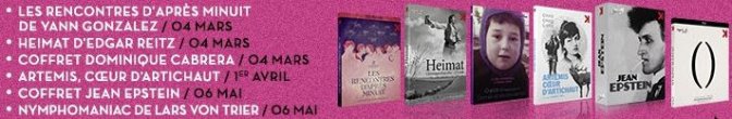 En mai, un coffret inespéré autour de Jean Epstein reviendra sur l’oeuvre du réalisateur de La chute de la maison Usher, Coeur fidèle et La glace à trois faces. On pourra aussi découvrir les deux segments de Nymphomaniac dans deux versions différentes.