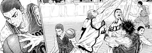 Au collège, Hanamichi Sakuragi s’est fait jeter par 50 filles. Il est ensuite entré au lycée, mais il est resté sous le choc du refus de la 50ème fille qui lui a répondu : « Je suis amoureuse d’Oda du club de basket. » C’est alors qu’est apparue l’âme salvatrice : Haruko Akagi. Il a suffit que, dans le couloir de l’école, elle lui demande : « Tu aimes le basket ? » pour que son coeur s’enflamme. Les choses ne sont malheureusement pas si simples puisqu’elle est amoureuse d’un garçon qui ne le sait pas : Kaede Rukawa. Ce garçon, véritable as du basket-ball du collège, va devenir le grand rival de Sakuragi.