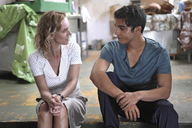Changement de décor et de cadrage pour nous plonger dans cette nouvelle ambiance ensoleillée et grouillante d’un Maroc bien vivant. Pourtant, le scénario exempt de toutes fioritures dépeint sans concession l’inhumanité de la condition ouvrière où les lois sociales sont quasi inexistantes et où la solidarité entre les travailleuses est impossible. Il ne reste plus à Édith qu’à se tourner vers sa logeuse et son fils (Mouna Fettou et Kamal El Amri) pour tenter de trouver un peu de chaleur humaine. Même si tous deux symbolisent un Maroc tolérant tourné vers l’avenir (Mina est une femme divorcée et libre qui gère seule sa maison d’hôtes, Ali est un garçon lucide et attachant n’ayant pas d’autre ambition que de découvrir le monde), ils jaugeront longuement le courage et la ténacité d’Édith, cette étrangère, à qui Sandrine Bonnaire, sensible et juste, insuffle une réelle crédibilité, avant de lui accorder leur amitié.