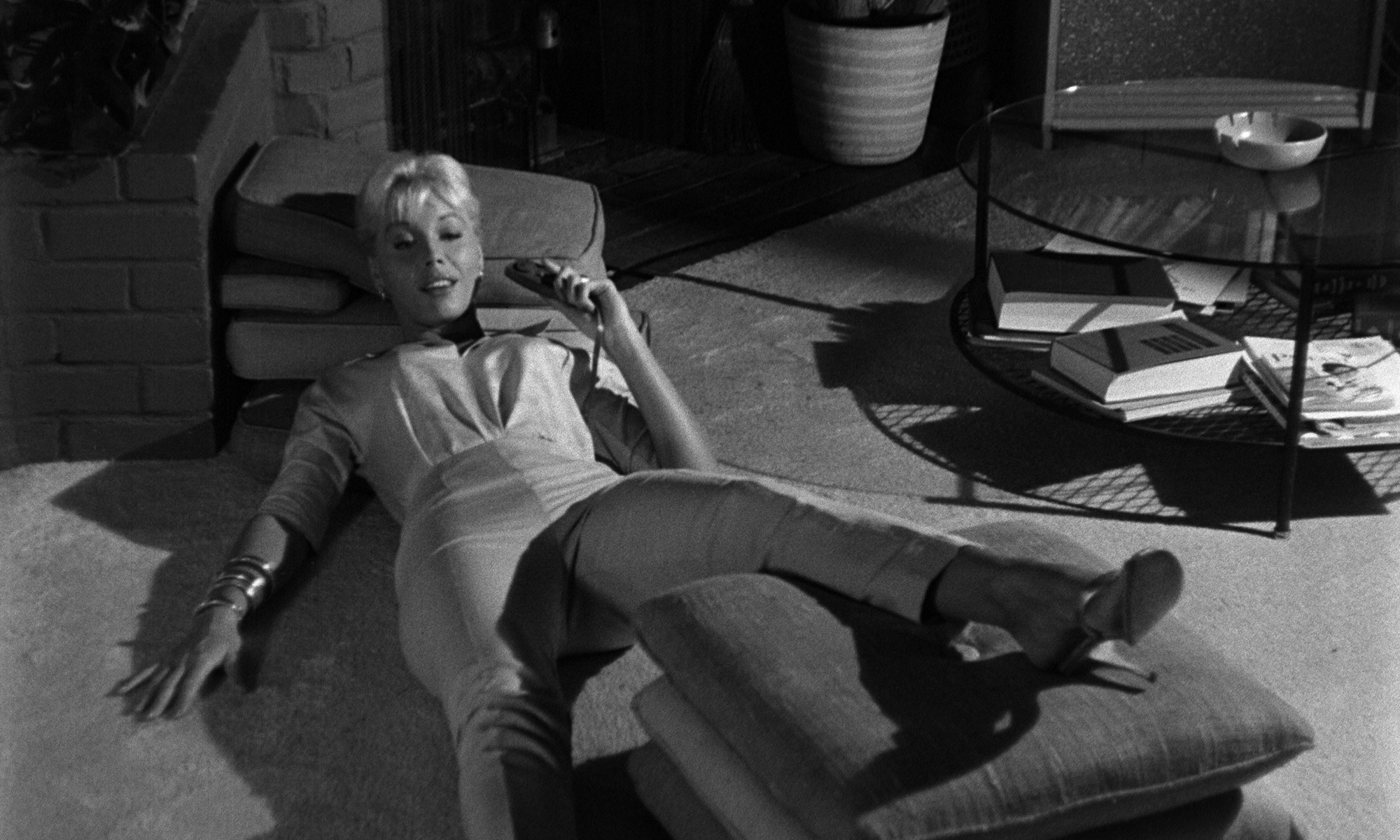 Notre avis : Premier film de Leslie Stevens dont la brève carrière reste peu connue, Propriété privée est une série B noire impressionnante de maîtrise et profondément originale ; à partir d’une idée somme toute simple, deux marginaux épiant puis s’invitant chez une jolie blonde, le cinéaste installe une tension subtile, que les dernières minutes dénouent dramatiquement. Mais c’est aussi l’occasion de faire un portrait sarcastique de l’american way of life, avec ce couple idéal formé par Ann, la blonde suave, et Roger, le parfait homme d’affaires intéressé par toujours plus d’argent. Piscine, vue sur la ville, grande maison au goût exquis dans une résidence calme, ils ne manquent de rien ; sauf qu’on comprend très tôt qu’Ann est frustrée (elle met un nouveau négligé, il s’endort) et qu’elle est un objet parmi d’autres, à qui on donne de l’argent de poche, qu’on habille et nourrit. A-t-on déjà parlé de manière aussi franche de l’aliénation et du désir féminins (n’oublions pas que le film date de 1960 !) ?