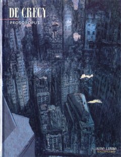Prosopopus, c’est la solitude et la détresse, la douleur et le chagrin, la violence et la folie orchestrés par un personnage que l’on croirait sorti d’un dessin animé pour enfants. L’atmosphère sordide retranscrite par de Crécy s’appuie sur la ville tentaculaire et ses trames ombrageuses. Au pied des vertigineuses verticales des buildings, il trouve un mouvement aussi stupéfiant que désespéré, cherchant une échappatoire à travers un trait qui rappelle celui de Plymtpon.