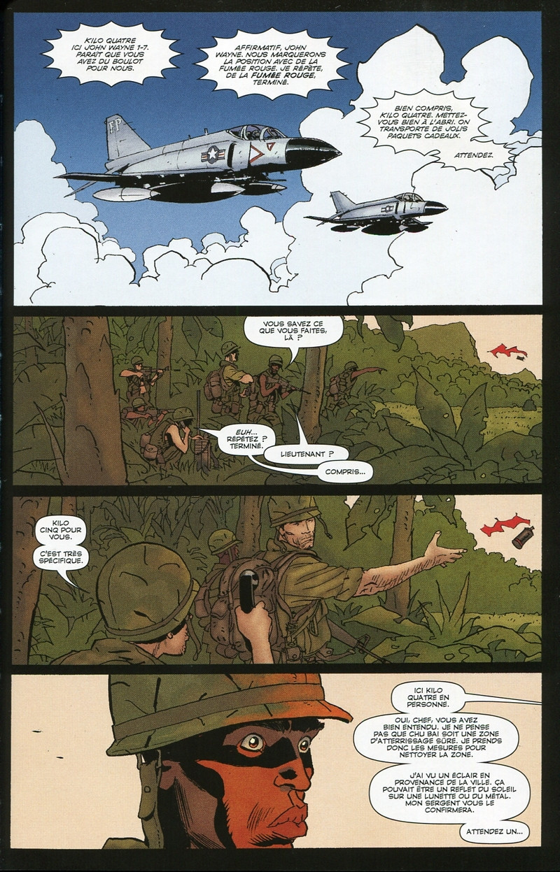Cependant, on a vraiment affaire à un pur récit de guerre, l’intrigue respecte tous les codes du genre et ceux qui souhaiteraient voir poindre la tête de mort blanche du Punisher seront déçus. Les autres prendront une claque.