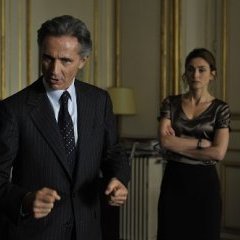 En faisant du spectateur un locataire temporaire du Quai d’Orsay, le réalisateur nous permet de voir par nous-mêmes comment fonctionnent les rouages de cette machine politique dont beaucoup se sentent coupés. Et si le ministre est focalisé sur une vision du monde qui ne souffre aucun compromis, il dirige son « armée » d’une main de fer pour donner à cette même vision une application concrète. Dans le rôle d’Alexandre Taillard de Worms, un Thierry Lhermitte ressuscité qui, après une longue traversée du désert de presque dix ans, se voit enfin confier un rôle à la mesure de son immense talent. C’est bien simple, on ne lui avait pas connu un tel aplomb depuis Le dîner de cons. Omniprésent, foutraque, exubérant, vociférant, claquant les portes à presque tous ses passages (on nous a assurés qu’aucun mobilier n’avait subi de dommages irréversibles), il donne à son personnage un charisme éblouissant, qui se transforme vite en véritable aura. Homérique serait l’adjectif idéal, mais le ministre nourrit une véritable passion pour Héraclite (dont les sages paroles rythment le film), si bien que sa « plume » doit sans cesse composer avec les citations du philosophe. On vous laisse découvrir. À ses côtés, Niels Arestrup (lui aussi impeccable dans un rôle pourtant à contre-emploi), le directeur de cabinet qui tempère les ardeurs trop enflammées du ministre, permet un contrepoint des plus judicieux qui renforce la crédibilité de l’ensemble. Quant à Raphaël Personnaz (découvert par le même Bertrand Tavernier), parfait en jeune premier tout droit débarqué de l’ENA, il confirme qu’il a déjà tout d’un grand. En bref, Quai d’Orsay, servi par un montage nerveux qui nous maintient dans un état de veille permanent et une grande inventivité dans la réalisation (split screen, caméra mouvante) vibre, trépigne, éclabousse même, le tout pour notre plus grand plaisir. Un authentique coup de maître qui vient faire le ménage dans une comédie française globalement ultra formatée.