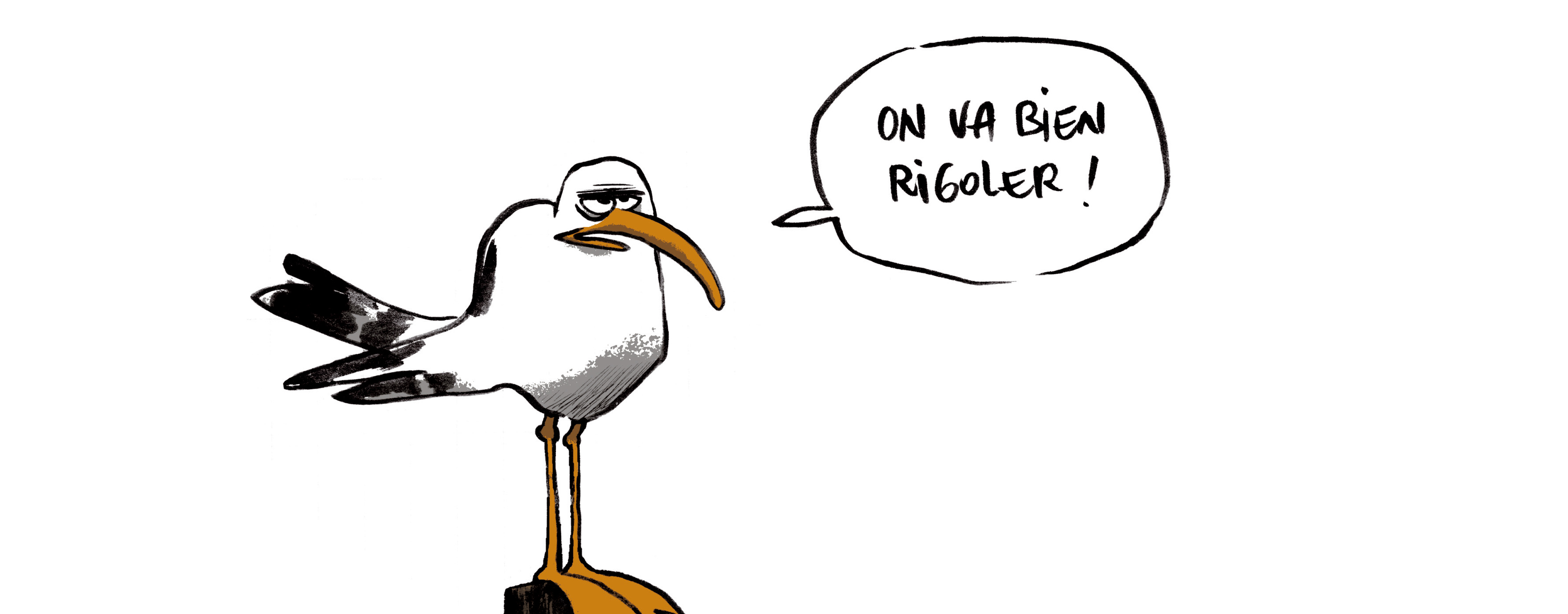 L’affiche, réalisée par Guillaume Bouzard, met en scène un volatile rieur, qui n’est pas sans rappeler celui d’un certain Franquin. Une affiche sobre, minimaliste, et très décalée !