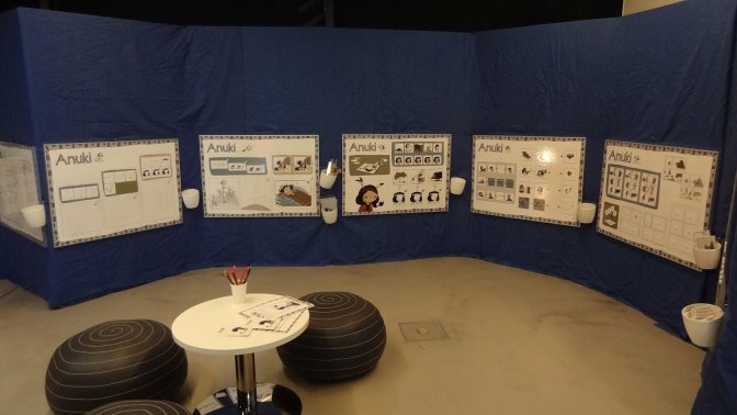 L’exposition Anuki se composait de différents panneaux permettant aux petits d’apprendre la bande dessinée de façon ludique. Apprendre à dessiner des personnages, comprendre la perspective et le sens de l’image, tous ces éléments étaient accessibles à un public très jeune, et leur a permis de faire un premier pas dans l’univers de la BD.