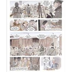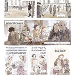 Toujours avec justesse, avec un coup de pinceau vivant, Toni Galmés complète donc cette nuit qui tombe avec un aller (et heureusement un retour) vers l’Allemagne et la Pologne, vers ces camps qui se dressent, et que Mylaine se souvient immenses, dans une foule où personne ne se connaît vraiment, avec des changements de soldats et de directeurs. Le dessinateur apporte sans le chercher une dimension chaleureuse, à travers ce personnage de Mylaine, non pas solaire mais forte à l’intérieur, non par rayonnement mais par un cœur, un noyau qui continue de brûler. Ainsi, grâce à elle, celles qui croisent sa route peuvent acquérir une certaine aura, une petite luminosité. Les camps, les SS, les gardiennes, s’ils restent abominables, eux aussi arrivent à ne pas être maléfiques, sans faire oublier leur inhumanité, mais en la racontant avec un dessin qui peut toucher tous les publics.