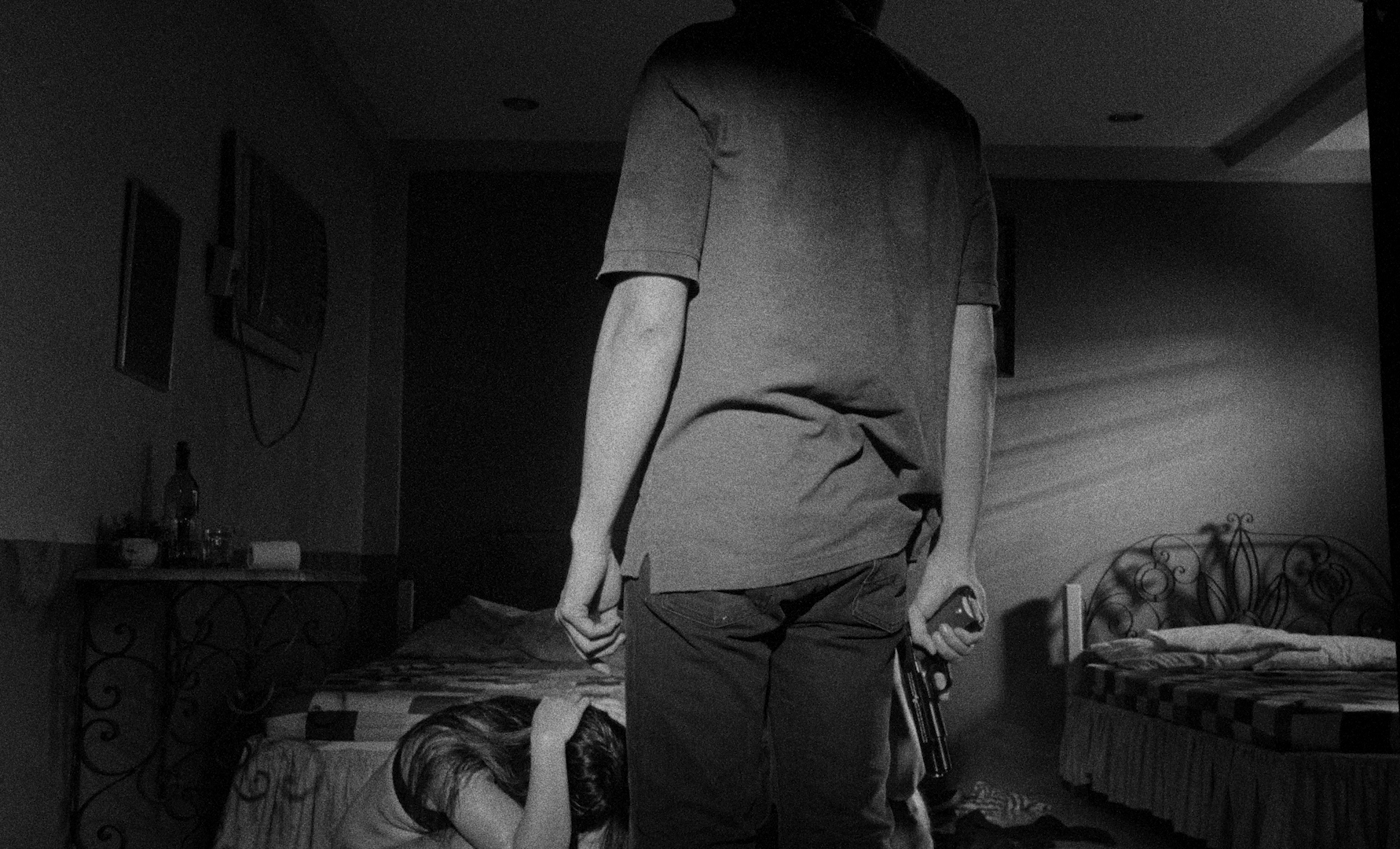 La dualité profonde d’Hermes se traduit physiquement, via une maladie de peau, procédé cinégénique s’il en est. Ce qui s’apparente à un léger artifice, classique correspondance entre morale condamnable et physique décrépi, est tout de même amené avec finesse, notamment par les choix esthétiques majeurs opérés par Diaz, en tête desquels les couleurs, ou plutôt l’absence de ces dernières. Au-delà de sa valeur plastique, le noir et blanc propose un niveau de questionnement supplémentaire. Au début, lorsque Hermes aborde sa dégradation physique, le spectateur ne peut véritablement la vérifier à l’œil nu. Preuve du flou moral qui l’entoure, et de l’incapacité d’autrui à matérialiser ses failles. La rareté des gros plans et le noir et blanc, donc, confèrent une aura bien mystérieuse au personnage et à son apparence physique.